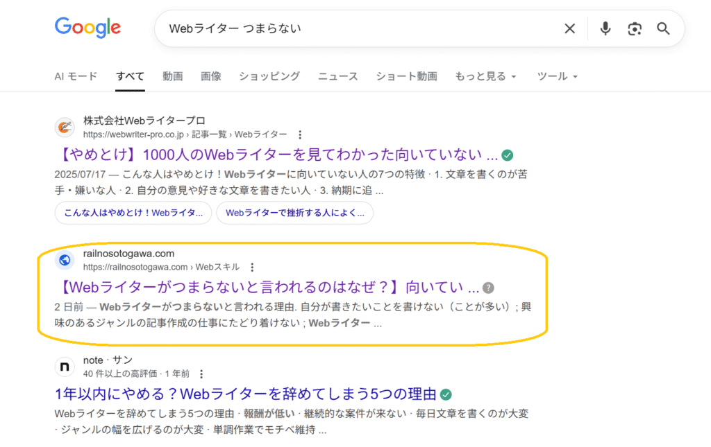 記事3 【Webライターがつまらないと言われるのはなぜ?】向いていない人を紹介 【検索順位2位】
